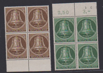 Glocke Klöppel Mitte in tadellos postfrischen Viererblöcken, Mi. 360,- +
