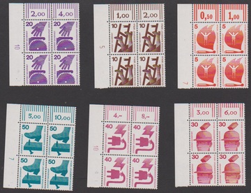 Unfallverhütung einheitlich in postfrischen Viererblöcken aus der linken oberen Bogenecke, dabei acht Werte mit DZ. Mi. für waagerechte Paare 385,- plus DZ (diese 475,- Mi.)