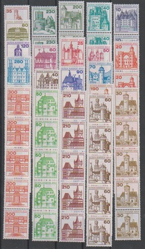 Burgen und Schlösser kpl. in senkrechten postfrischen Rollen-Fünferstreifen. Mi. 240,-
