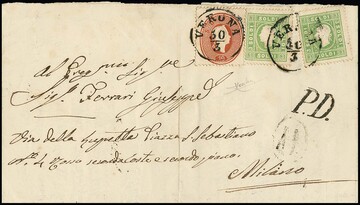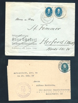 12 Pfg. im Randpaar in der guten Farbe als MeF auf Brief (dieser leichte Randverfärbung), sowie 16 Pfg. als EF auf Berliner Ortsbrief