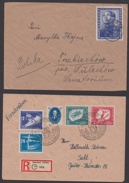 50 Pfg. UPU im Unterrandpaar, nebst 24 Pfg. Pieck, auf portoger. R-NN-Brief aus Zehdenick 1951