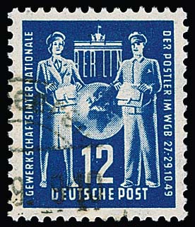 12 Pfg. Gewerkschaft mit Teilauflagen-Plattenfehler "R von DER gebrochen" gest.