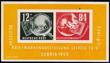 Debria-Block mit Plattenfehler "Strich über 9" postfrisch, sign. Weigelt. Mi. 600,-