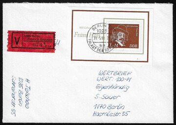 Vier bessere Belege: Nr. 270 als EF auf Auslandsbrief, Bl. 12 auf FDC, Nr. 1064 als DV-Bogeneckenpaar, sowie Bl. 61 auf Wertbrief