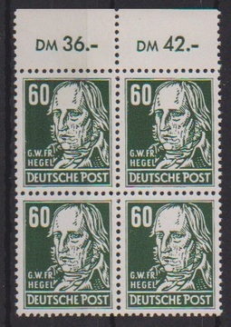 60 Pfg. schwarzgrün, Köpfe II, im postfrischen Oberrand-Viererblock, sign. Mayer. Mi. 360,-