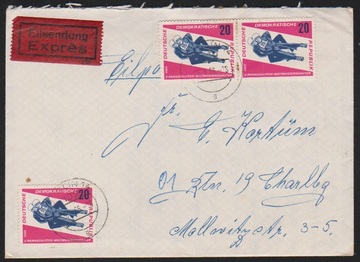 20 Pfg. Rennschlitten per drei als MeF auf Bedarfs-Orts-Expreßbrief aus Berlin
