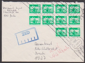 10 Pfg. Bauwerke per zehn im Aufbrauch auf Bedarfs-ZKD-Brief aus Berlin, 27.6.90