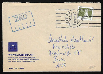 2 M. grosse Bauwerke als gute Einzelfrankatur im späten ZKD-Aufbrauch auf ZKD-Bedarfsbrief aus Berlin, 27.6.1990