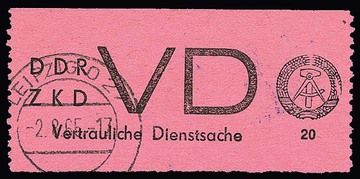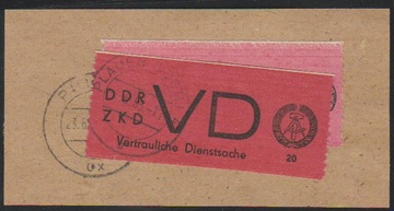 Dienst D, 20 Pfg. Vertrauliche Dienstsache mit Plattenfehler "unbedruckte Stelle im Ährenkranz" gestempelt. Mi. 500,-