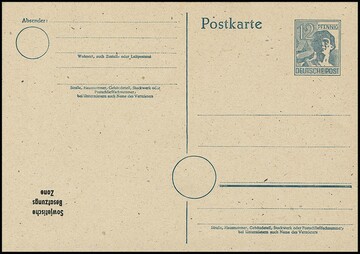 Aufdruck-Ganzsachenkarte 12 Pfg. mit kopfstehendem Aufdruck links unten ungebraucht, nur wenige Exemplare bekannt, sign. Zierer
