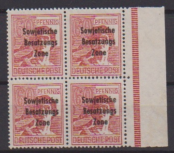 60 Pfg. rotkarmin, postfrischer Rand-Viererblock, sign. Zierer. Mi. 320,-
