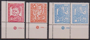 Kinderhilfe als postfrische linke untere Bogenecken mit Druckerzeichen, Mi. 184,-