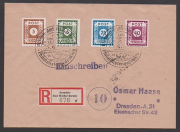 5, 6, 25 u. 40 Pfg. mit Liniendurchstich von Loschwitz mit zusätzlich doppeltem Durchstich, einmal mittig durch das Markenbild, auf überfrankiertem R-Brief aus Dresden Bad Weißer Hirsch, sign. Kunz