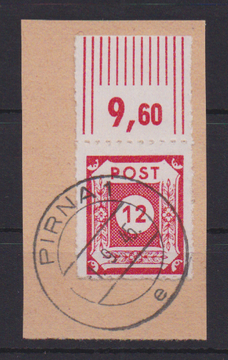 12 Pfg. mit Postmeistertrennung von Pirna vom Oberrand auf Luxusbriefstück, sign. Busch. Mi. 120,-