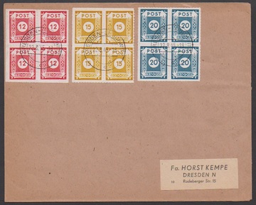 Freimarken, Linien-Durchstich von Loschwitz in ideal rundgest. Luxus-Viererblöcken auf großen Briefstücken, sign. Ströh. Mi. 480,- lose ++