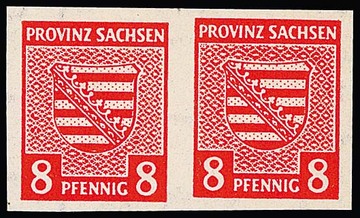 8 Pfg. Provinzwappen im postfrischen Paar mit sehr stark versetzten Druckklischees