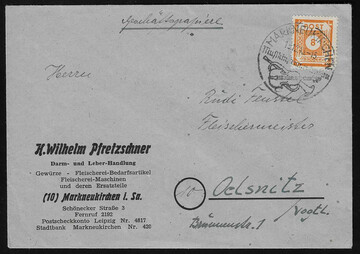 20 u. 12 Pfg. Ziffern auf NN-Brief (Gebrauchsspuren) aus Dresden, sowie 8 Pfg. einzeln auf "Geschäftspapiere"
