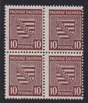 10 Pfg., seltene Teilauflage mit fluoreszierendem Gummi, im postfrischen Viererblock, sign. Ströh. Mi. 480,-