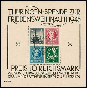 Weihnachtsblock auf t-Papier, Type IV, tadellos gestempelt "Weimar Land", Attest Ströh. Mi. 3300,-