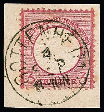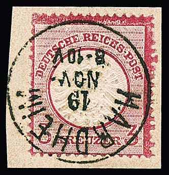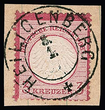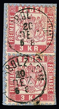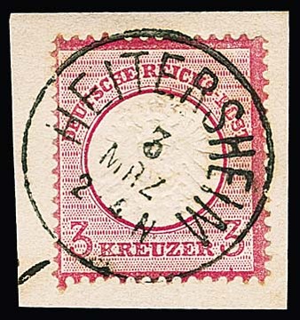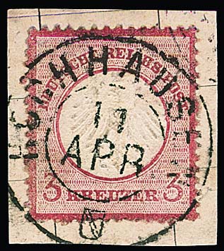 "Hochhausen", nachverw. K2 zentrisch auf Kabinettbriefstück 3 Kr. kl. Brustschild (FZl und rauh gezähnt, Fotoexp. Krug), sowie der blaue Billet-Ra2 auf Postschein 1872