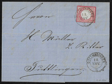 "Grünsfeld", nachverw. K2 zentrisch auf Kabinettbriefstück 1 Kr. kl. Brustschild, sowie auf Brief 3 Kr. (kl. Druckstelle vom Briefinhalt)