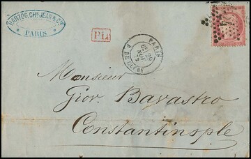 80 C. rosa einzeln auf etwas unfrischem/fleckigem Brief von Paris, 29.11.72, nach Constantinopel/Türkei, 2. Gewichstsstufe