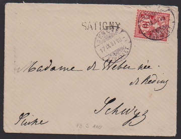 Zwei Briefe in die Schweiz, 1864 von Lyon mit 40 C. orange nach St. Gallen, sowie 1865 von Pantin mit zweimal 20 C. blau nach Genf, roter Ra2 "Affranchissement insuffisant" und mit 80 Rp. nachtaxiert