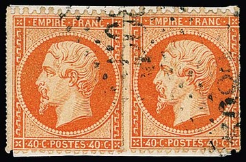 Zwei Briefe (min. Mgl.) je nach Ägypten: 1868 von Straßburg mit Paar 20 C. blau nach Kairo, sowie 1869 von Paris mit 40 C. orange nach Alexandria