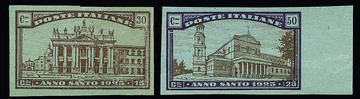 1 L. Heiliges Jahr 1924, acht seltene ungezähnte Probedrucke, einmal mit Aufdruck "ERITREA", seltenes Angebot!