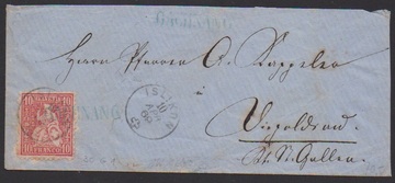 "Grosswangen", klarer L1, K2 von Luzern nebensetzt, auf Faltbrief 1863 mit normal gez. 10 C. blau (30)