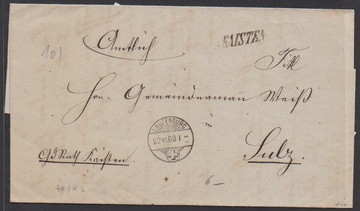 "Kaisten", seltener Schrägschrift-L1 nebst K2 "Laufenburg" auf Brief 1869 (40)