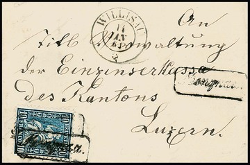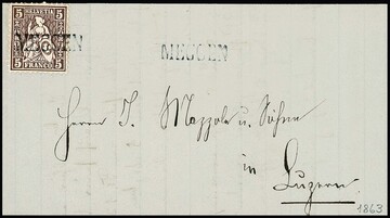 "Meggen", L1 je als gute Entwertung auf zwei Briefen 5 C. braun 1863 bzw. 10 C. blau 1866 (diese kl. Mgl.) (30)