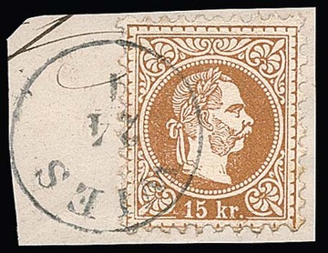 "Triest", seltener kleiner Ra1 "V. Triest" vollständig auf Kabinettbriefstück 6 Kr. braun