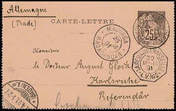 Drei Ganzsachenkarten 1889-1899 mit ungewöhnlichen Destinationen: Portugal, Ägypten und Schweden
