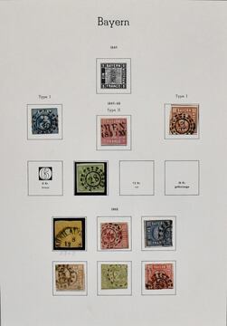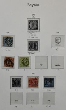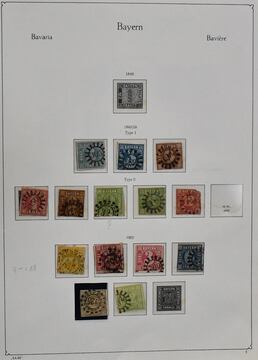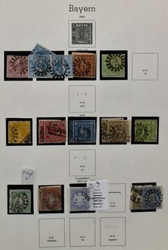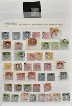 Bayern, relativ kpl. Slg., beginnend mit Nr. 1Ia mit Fingerhut-K1 von Altoetting (hierauf selten) und zusätzlich Federzug, gepr. Brettl, ferner Briefstück Nr. 4I, 2-7 überkpl. inkl. zweimal Nr. 7, 8-13a/b, 14cI, bessere Wappen-Kreuzer, gute Pfennigzeit, Flugpost Nr. I gest., Porto Nr. 1/2 gest., bessere gest., gepr. Dienst usw.