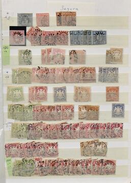 Bayern, Fiskalmarken, bemerkenswerte Spezialslg. nur der Fiskalmarken mit gesamt etwa 1080 Marken, davon etwa 560 Stempelmarken, rund 190 Gebührenmarken, über 100 Gerichtskostenmarken, 45 Kirchensteuermarken und 190 sonstige Fiskalmarken, teils auch in Einheiten, Zwischenstegen, Infla-Aufdrucken, Bedarfsverwendungen. Seltenes und ungewöhnliches Angebot!