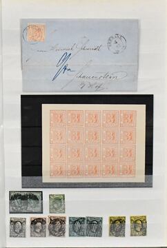 Sachsen, alter, meist gestempelter Bestand von 120 Werten ex Nr. 2-12 und weiteren 100 Wappen-Werten, dabei auch bessere wie Nr. 5(5), 7, 12(4), sowie drei Briefe etc., alles sehr unterschiedlich