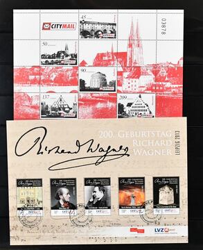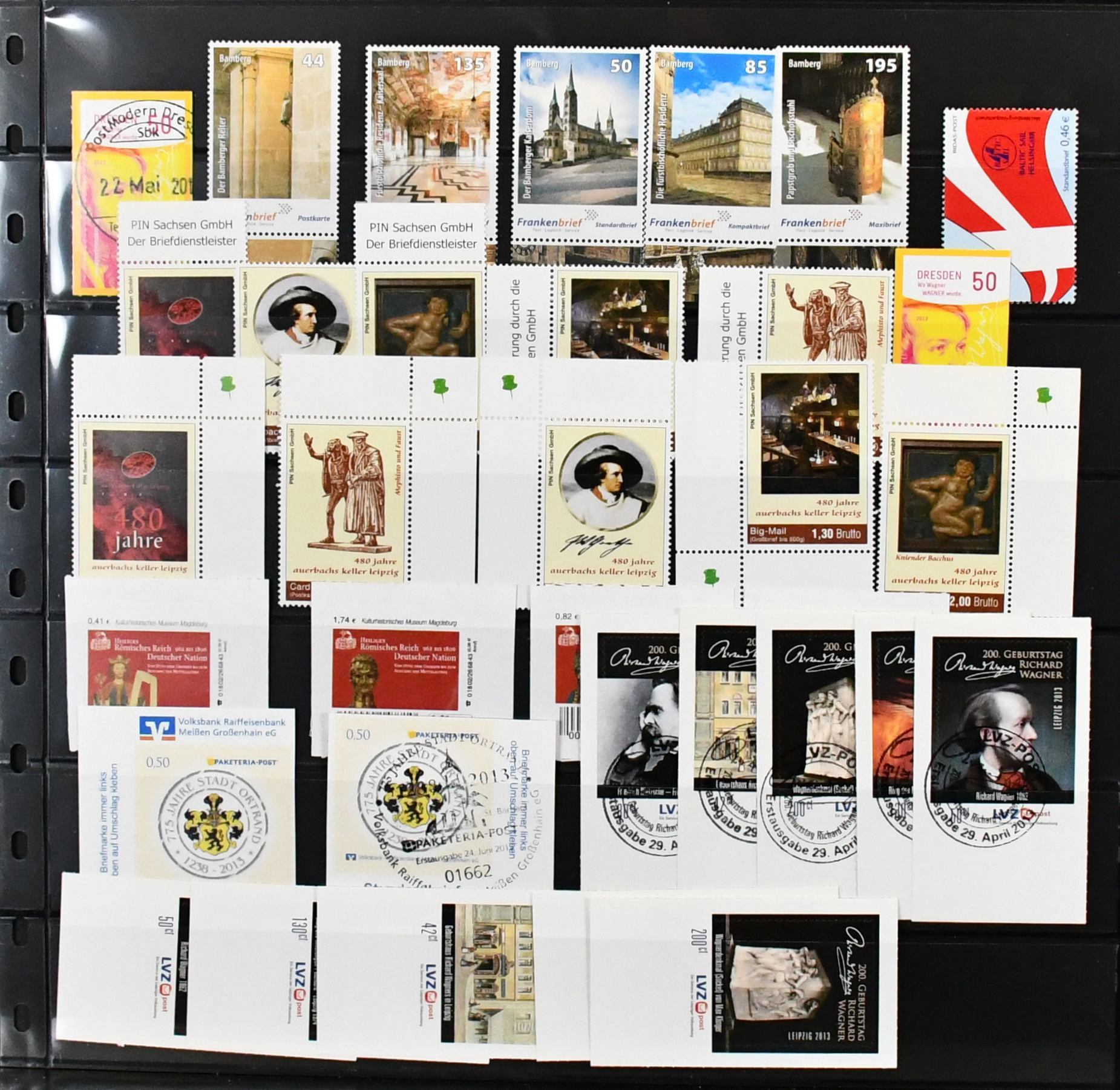 Bund, Deutsche Privatpost, Partie postfr./gest./Briefe, viele Motive, u.a. Motorsport, sowie 140,- Euro postfr. Nominale