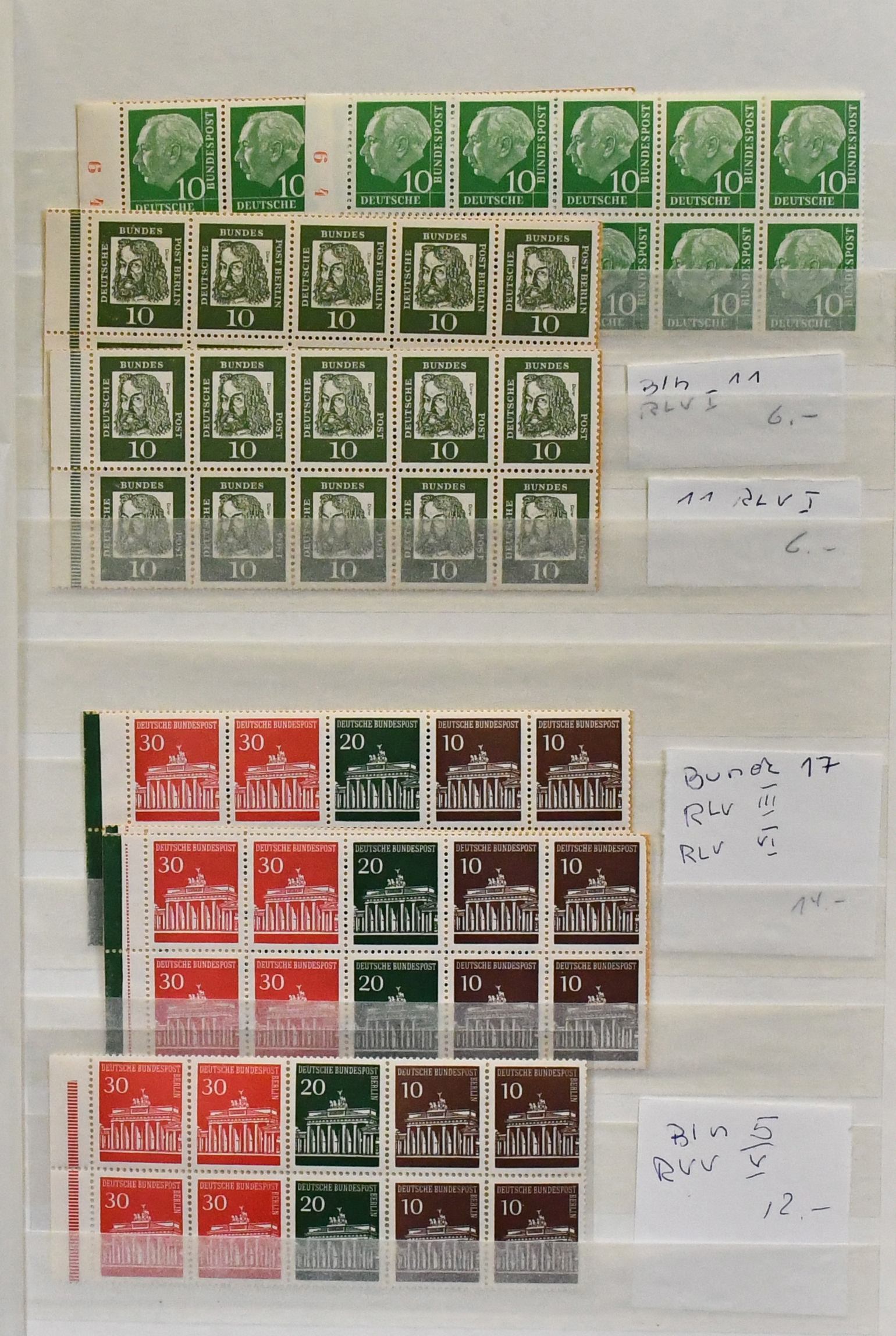 Bund, Rollenmarken SWK, postfr. Slg. senkrechter Dreier- und Fünferstreifen, alle mit rückseitigen Zählnummern, teils vom Rollenende mit vier Leerfeldern, dabei viele versch. Wertstufen ex 5/700 Pfg. Der ehem. Postpreis betrug bereits 470,- DM