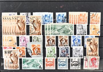 Alt- und Neusaar, alte Sammlung mit vielen Werten auf Vordrucken, ungebr./gest., dabei u.a. Germania- und Ludwig-Aufdrucke, Freimarken-Serien mit Nr. 53/69, 70/83, Volkshilfen mit Nr. 122/25, 171/77, Dienst, Neusaar und OPD weitgehend kpl., u.a. Dienst Nr. 33/44