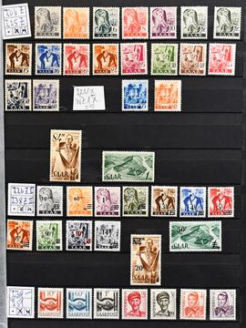 Saar, 1920/1959, Slg. ab erster Ausgabe, Schwerpunkt bei den Ausgaben nach 1947, im Lindner-T-Vordruckalbum. Dabei Nr. 226/54 gest., Volkshilfe 1951 postfr., Kleinbogen Nr. 351/53 postfr., OPD postfr. und gest. je kpl., inkl. Nr. 380 DZ "Kt" gest. usw. Mi. 1500,- plus gest. Hochwasserhilfe-Satz unberechnet