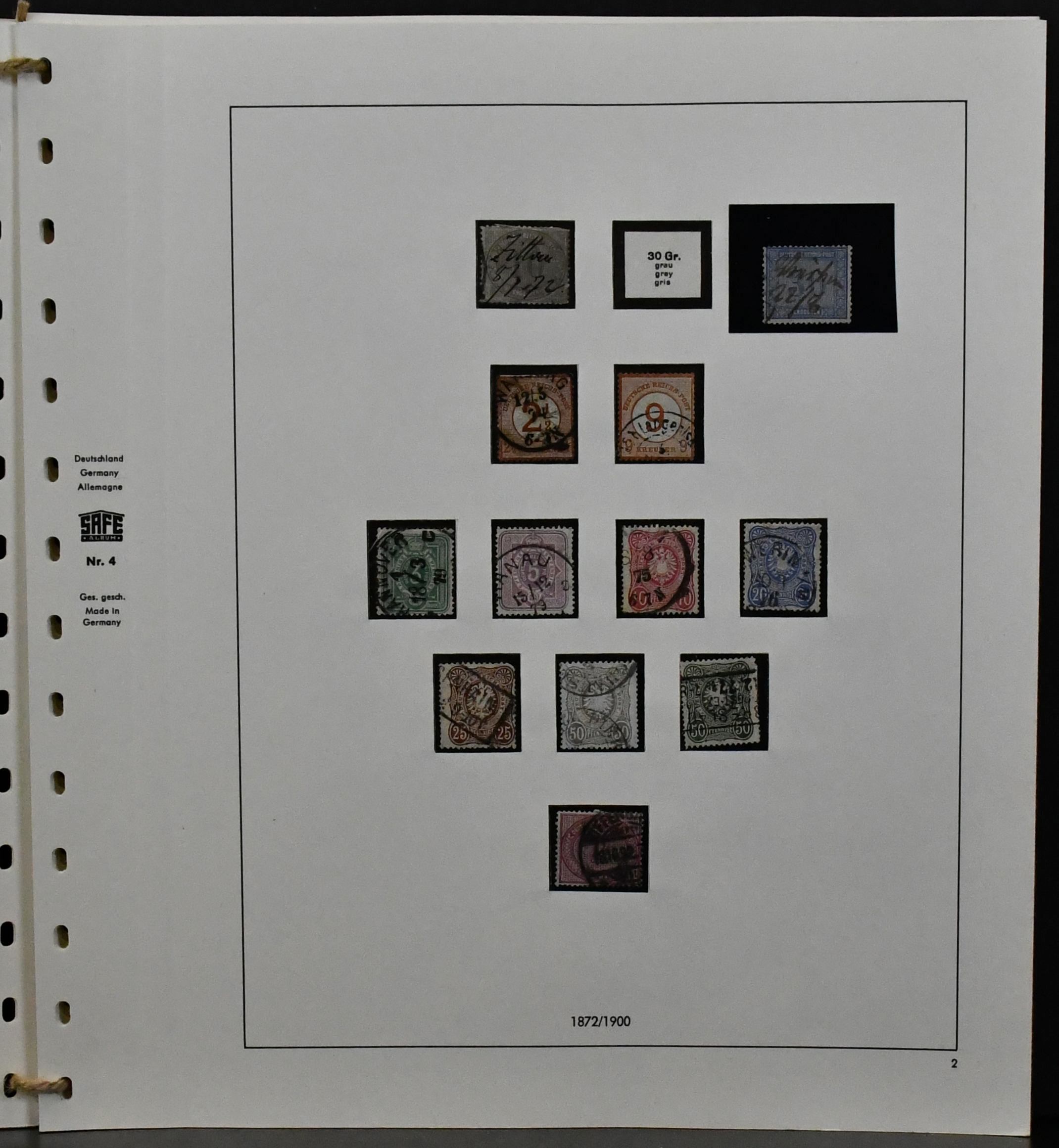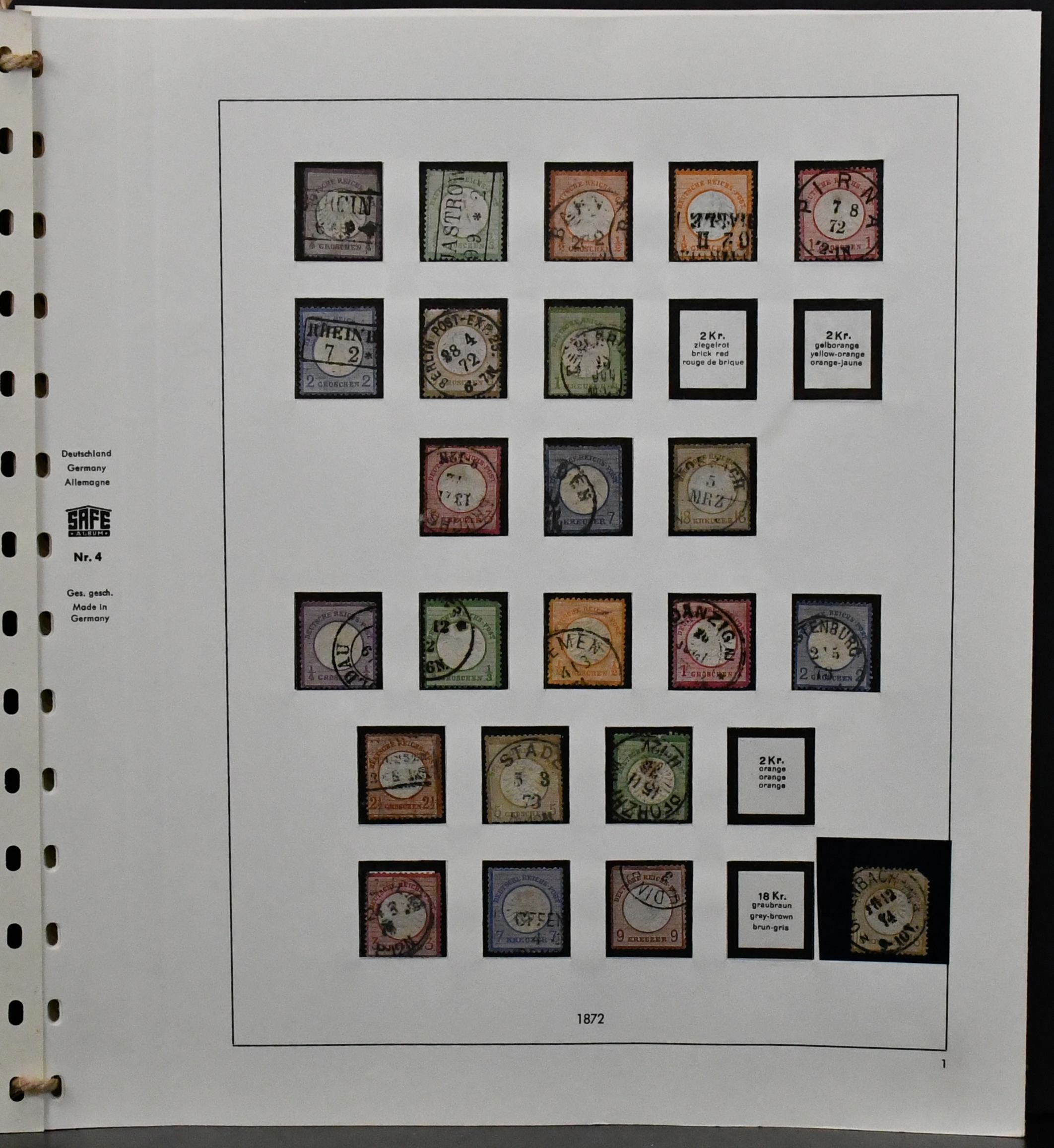 Deutsches Reich, 1872/1923, gestempelte Slg., beginnend mit unterschiedlichem Brustschildteil mit alleine 4000,- Mi., inkl. Nr. 1/6, 11, Nr. 13 mit Federzug, 27b usw., auf SAFE-Vordrucken, ferner Germania mit einigen Querformaten, Infla inkl. Nr. 119/38 etc. Dazu unbewertet eine gest. Nr. 28 (Mi. 2800,-) mit Eckfehler