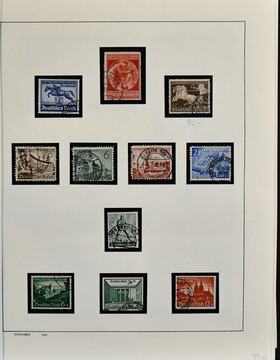 III. Reich, gestempelte Sammlung mit den Jahrgängen 1939/45 komplett inkl. allen besseren Ausgaben, u.a. Danzig-Abschied (Mi. 220,-), Nr. 695/99 (Mi. 152,-), 702/13, 746/47, 773/78, 799/802 usw., bis postfr. Nr. 909/10, auf Vordrucken