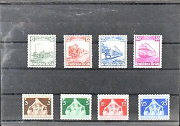 Deutsches Reich, 1933/1945, ohne die Blöcke und Nr. 496/98, nahezu kpl. Slg., gestempelt, teils auch ungebraucht, mit Nothilfe-Sätzen von 1933/1935, Nr. 695/99, Danzig-Abschied usw., bis Nr. 908. Dazu ein Ostropa-Block mit kaputtem Blockrand, von dem aber die Einzelmarken tadellos sind