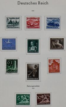 Deutsches Reich, ungebr./gest., von 1939-1945 kpl. Sammlung, inkl. Nr. 695/99, Danzig Abschied, Nr. 747 usw., bis Nr. 909/10, auf älteren Leuchtturm-Vordrucken. Dazu etwas Dienst