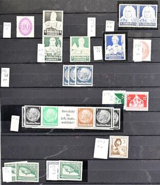 III. Reich, meist postfrische Zusammenstellung, mit Nr. 563, zweimal Nr. 747, einmal postfr., mehreren Wehrmachtssätzen, zweimal Nr. 904I, Nr. 906I usw. Mi. 1700,-