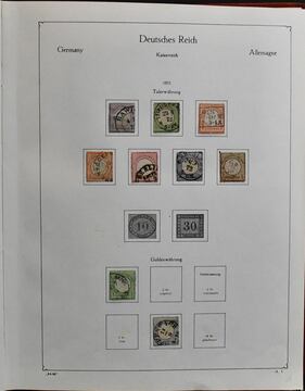 Deutsches Reich, 1872/1945. Slg. ab den Brustschilden, im dekorativen KABE-Vordruckalbum. Dabei Nr. 1/6, 17/23, Infla von Nr. 98 bis 337 kpl., Weimar mit Satz-Höchstwerten, III. Reich usw. Dazu Bes. II. Wk. inkl. Elsaß, Lothringen und Luxemburg je kpl. Mi. 2500,-