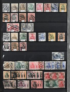 Deutsches Reich, 1872-1923, unterschiedliche alte Slg. ab Kaiserreich, mit einigen Brustschilden, z.B. Nr. 16/22, Pfennig, Germania mit Mark-Werten, u.a. Nr. 97B im Bogen, Infla, Dienst etc.