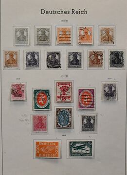 Deutsches Reich, Germania und meist Infla, gest. Slg. mit Nr. 83/93I/II, 119/38, 144/46I gest., 158/76, 177/96 fast kpl., 233/34, 245 gepr., 277/96 usw., auf Leuchtturm-Vordrucken. Mi., sehr zurückhaltend gerechnet, bereits 1500,-