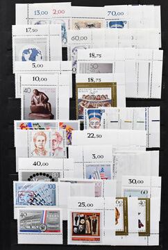 Berlin, ca. 1970-1990, postfrische Partie mit sehr vielen Bogenecken und Randstücken, fast alles unbeschriftet und teils mit Formnummern
